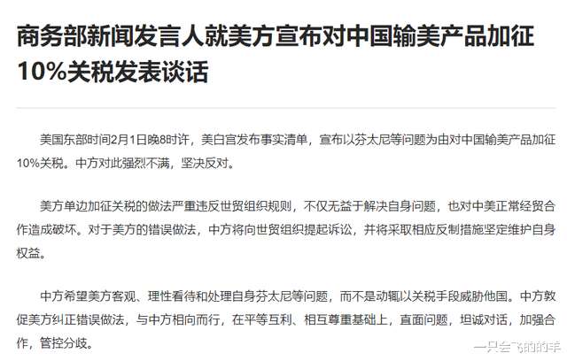 对于特朗普加征关税的做法,中方也在第一时间进行了回应。
